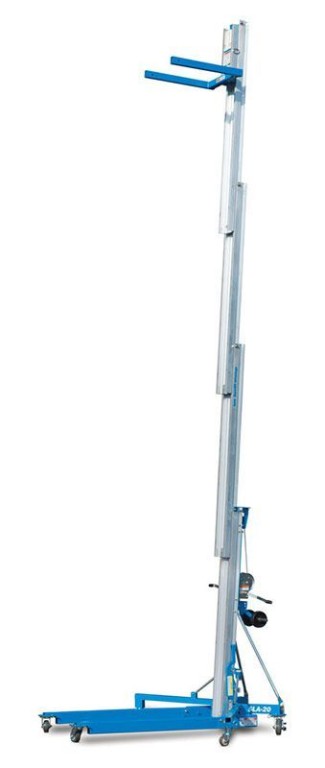 A manually operated material lift, the Genie® Superlift® Advantage SLA™-25 lift is designed to be versatile, with a range of compatible material handling attachments.